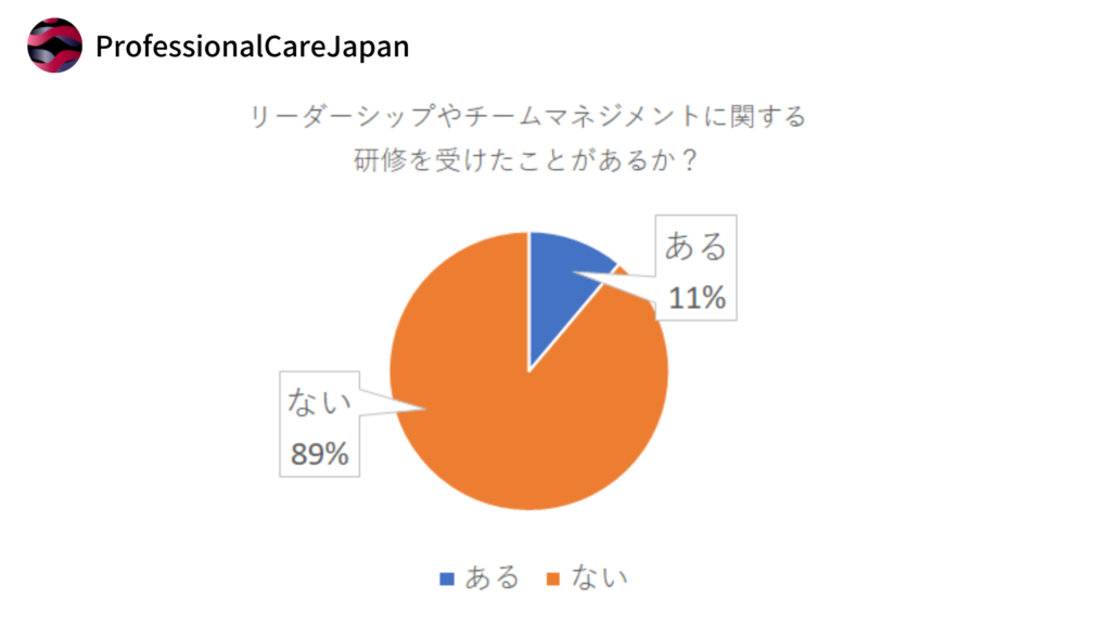 「リーダーシップやマネジメントのような研修を受けたことがあるか」とい質問に対して、