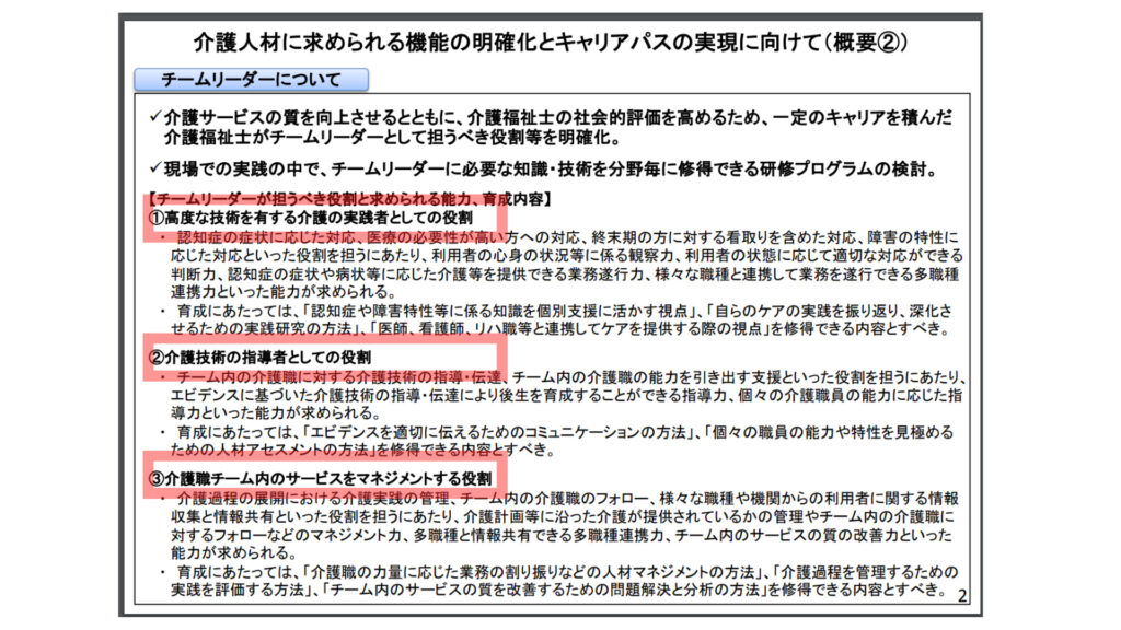 有識者会議でも、リーダー級介護職員を増やすことの重要性の声が上がっており、
