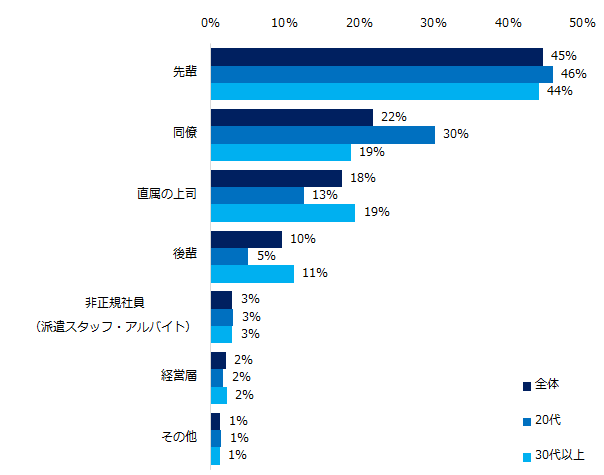 「先輩、上司、経営層」に対しての上位理由は、以下通りです。